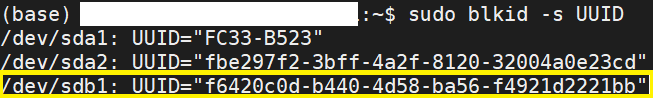 1 | sudo blkid -s UUID |