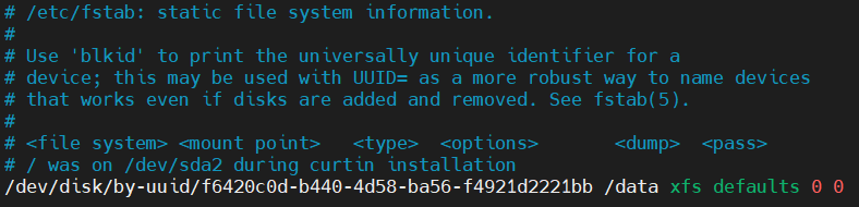 1 | sudo vim /etc/fstab |