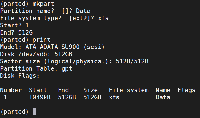 1 | mklabel gpt |