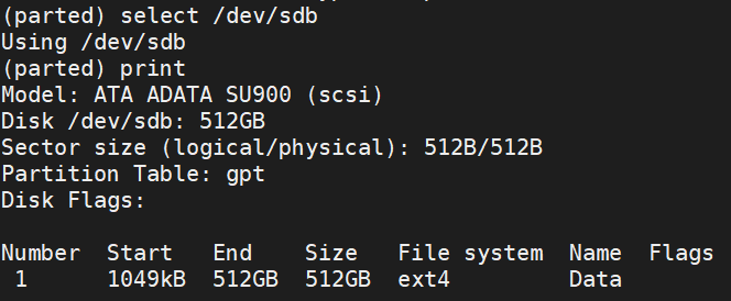 1 | 假設硬碟代號為 sdb |