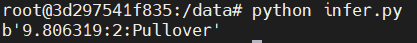 運行客戶端 1 sudo docker run -it --rm --name Triton_Client -v /home/user/data:/data nvcr.io/nvidia/tritonserver:21.05-py3-sdk bash -c 'python /data/client.py'